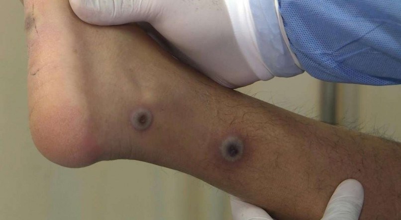 • Aparecimento de lesões em pele, predominantemente em face e membros.