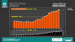 Nas ultimas 24 horas também foram confirmados 16 óbitos pela doença. As mortes registradas são de pessoas que residiam em Campo Grande (8), Corumbá (2), Bela Vista (1), Dourados (1), Itaquiraí (1), Nova Alvorada do Sul (1), Ponta Porã (1) e Três Lagoas (1). A média móvel está em 13,9.