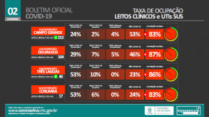 Em seguida, Resende falou do esforço do Governo do Estado em ampliar o número de leitos para atender a demanda. “Estamos trabalhando para abertura de UTIS, já abrimos 15 leitos em Dourados, 10 de UTI e 5 clínicos no Hospital Evangélico, abrimos 10 leitos de UTI em Ponta Porã, 10 leitos de UTI em Amambai, já estamos funcionando 5 leitos novos em aparecida do Taboado, 5 leitos em Costa Rica, abrimos 10 leitos de UTI em Três Lagoas, e estamos trabalhando para abertura de mais 10 leitos de UTIS. já disponibilizamos para Campo Grande a possibilidade de abrir 35 leitos de UTI no Hospital Regional”.