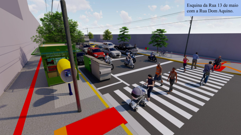 O projeto de arquitetura prevê calçadas padronizadas, recapeamento asfáltico, mobiliário urbano, coleta seletiva de lixo, sistema de videomonitoramento, conexão wi-fi gratuita, iluminação com lâmpadas de LED, semaforização inteligente para segurança de pedestres e motoristas. Além disso, quem passar pela região sentirá o conforto térmico trazido pela arborização e paisagismo planejado.