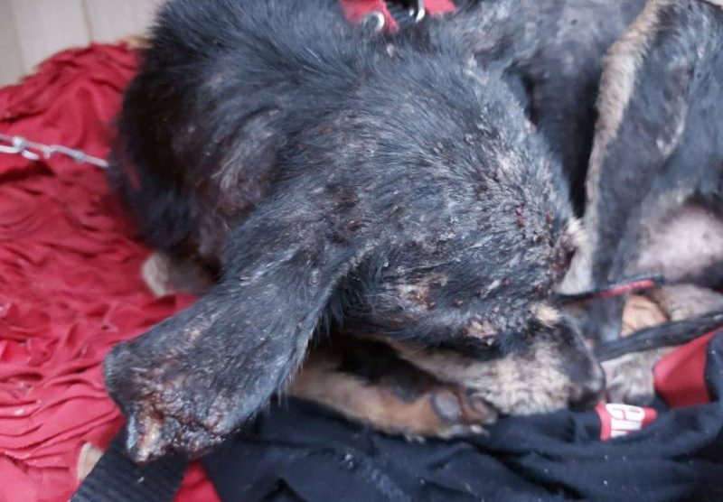 O animal sem raça definida estava extremamente debilitado por desnutrição e com sarnas, carrapatos e ferimentos pelo corpo devido aos parasitas e as doenças. O cachorro foi apreendido e encaminhado para ser atendido em uma clínica por médicos veterinários, que atestaram a situação de maus tratos.