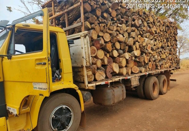 Polícia Militar Ambiental de Campo Grande apreende caminhão com 30 m³ de madeira ilegal e autua infrator em 9 mil