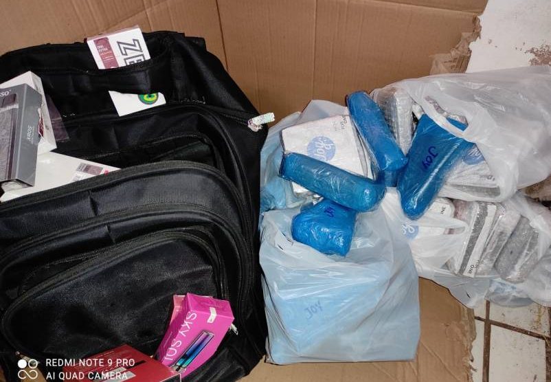 Durante revista ao bagageiro do ônibus, os policiais localizaram várias mercadorias de origem estrangeira a, ainda, uma mochila contendo cigarros eletrônicos (Vaper) e aparelhos receptores de canais clandestinos.