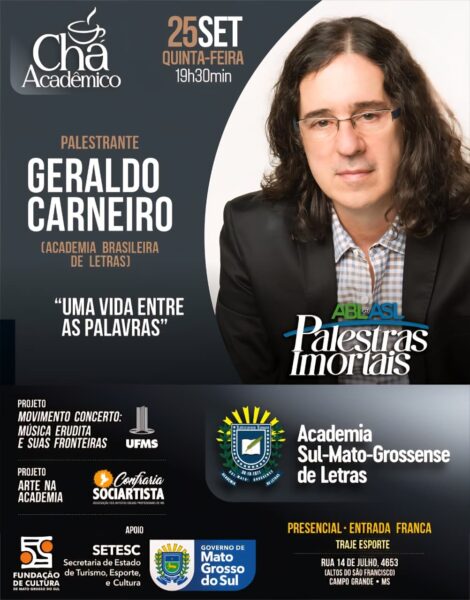 Literatura, artes visuais e música, com entrada franca e traje esporte Nesta quinta-feira, 25 de setembro, a Academia Sul-Mato-Grossense de Letras recebe o...