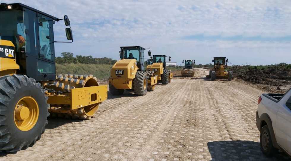 Com 50% dos serviços preliminares concluídos, como abertura do arruamento, limpeza do terreno e implantação da base para receber o pavimento, segue em ritmo...