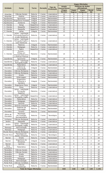 • 10% para candidatos ao regime de cotas para Residentes em Mato Grosso do Sul.