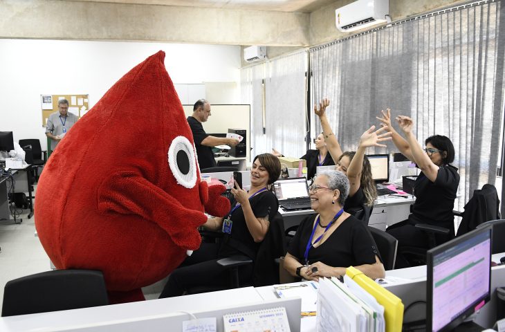 Com clima descontraído e divertido, Zé Sanguinho esteve no prédio da Governadoria, que também abriga a Segov (Secretaria de Estado de Governo e Gestão Estratégica) e a Casa Civil para convidar todos os servidores do órgão público a doarem sangue, no dia 24 de outubro.